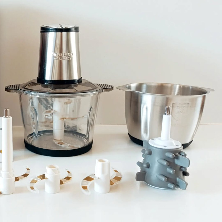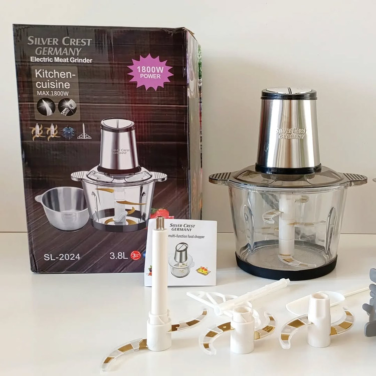خردکن سیلورکرست مدل SL-2024 ، با توان الکتریکی ۱۸۰۰ وات ، ظرفیت ۳.۸ لیتر ، دو سرعته ،دارای دو کاسه (استیل و شیشه ای) یک جفت تیغه ششتایی طلایی با قابلیت چفت شدن روی هم بدون نیاز به پیچ و مهره . این محصول دارای یک همزن پلاستیکی برای مخلوط کردن مواد مایع و خمیری و یک سیر پاک کن سیلیکونی می باشد . برای جلوگیری از ارزش هنگام استفاده دو واشر ضربه گیر برای آن قرار داده شده است.