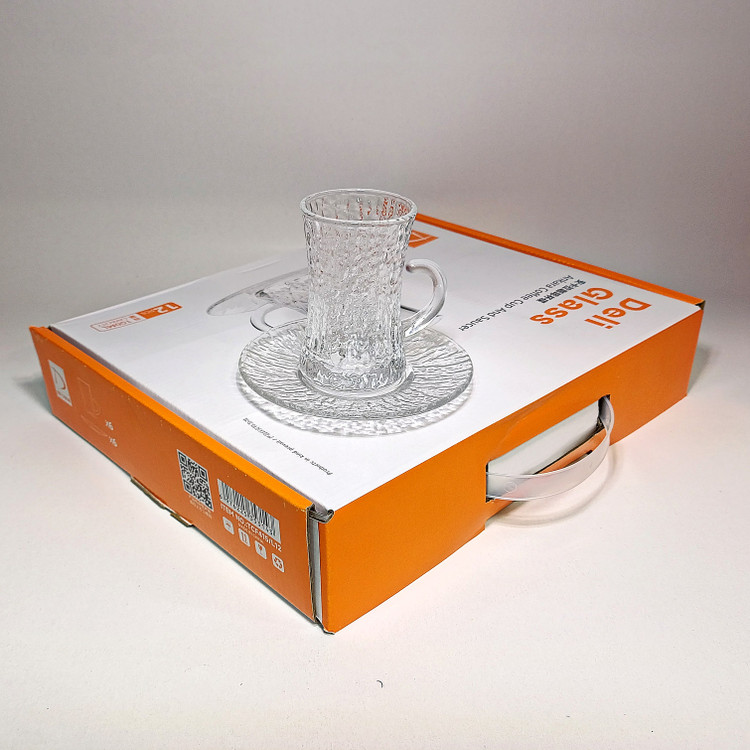 ۶عدد فنجان+ ۶عدد نعلبکی طرح یخی شفاف